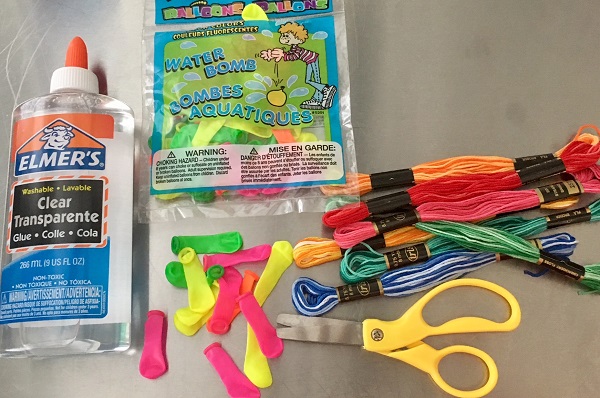 The art of String Eggs has been around since Grandma was in kindergarten. Back in the day, crafty kids would use liquid starch or sugar water to create these elegant globes built upon balloons. For this week’s Maker Monday project, our String Eggs use school glue, like Elmer’s, to attach embroidery thread in a web-like pattern around balloons.